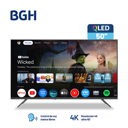 Disfrutá la mejor experiencia de entretenimiento con el Smart TV BGH LED 50″ QLED B5026US7G.