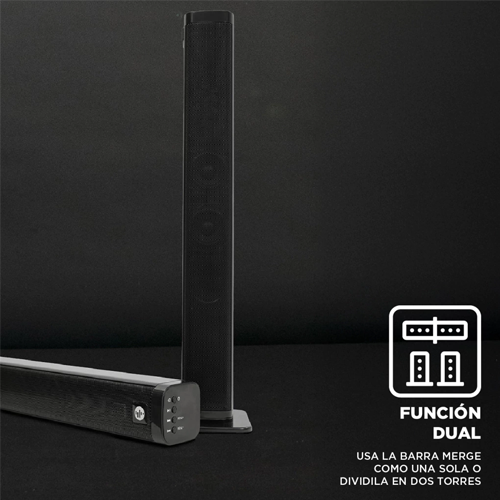 - Configuración dual: puede usarse como barra de sonido única o dividirse en dos torres independientes.