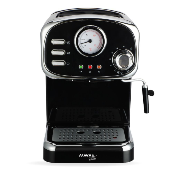 La Cafetera Espresso Aiwa AWK-CE200N combina la elegancia del estilo vintage con la versatilidad moderna. Compatible con café molido y cápsulas Nespresso®, ofrece una preparación personalizada de tus bebidas favoritas