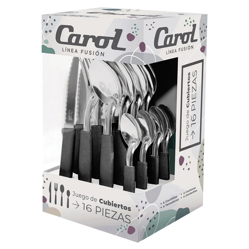 Dale un toque de elegancia y funcionalidad a tu mesa con el juego de cubiertos Carol modelo 410, compuesto por 16 piezas esenciales para el día a día. Su diseño moderno y ergonómico, junto con su presentación en caja, lo convierten en una excelente opción tanto para uso personal como para regalar.