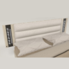 Respaldo de cama, moderno y funcional, extremos con detalle en vidrio de color con micro grabado y luces led. Centro tapizado y acolchado de espuma supersoft. Luces led regulables.