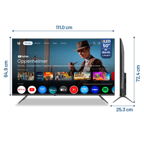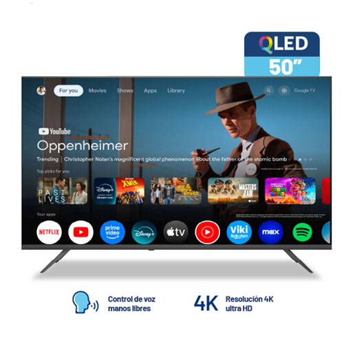• Pantalla QLED de 50” con resolución 4K Ultra HD: colores intensos y detalles nítidos.