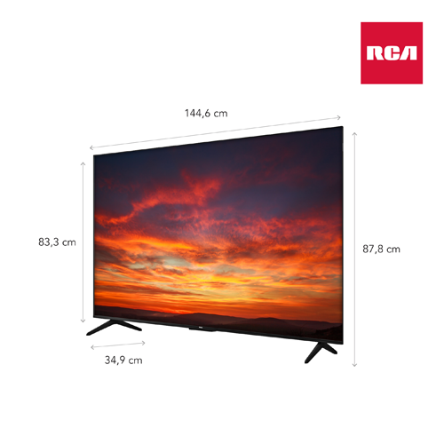 El televisor RCA QL65TH300 QLED 65″ 4K con Google TV combina gran calidad de imagen con funciones inteligentes como Google Assistant y Chromecast integrado.